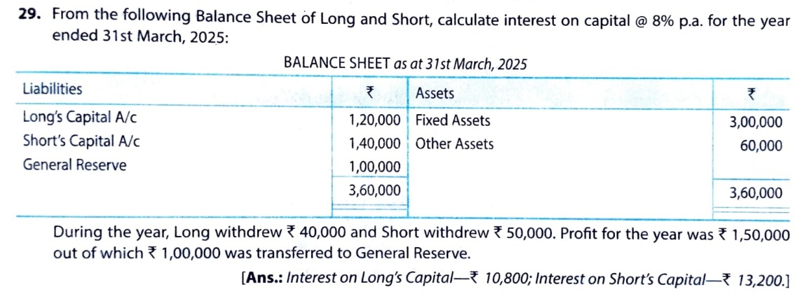 [Ans: Interest on Long’s Capital – ₹ 10,800; Interest on Short’s Capital – ₹ 13,200.]