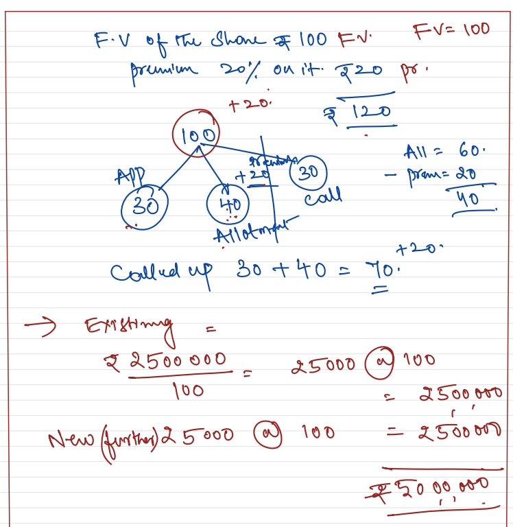 Global Trade Ltd. has authorised share capital of ₹ 1,00,00,000 divided into 1,00,000 Equity Shares of ₹ 100 each. It has existing issued and paidup capital of ₹ 25,00,000. It further issued to public 25,000 Equity Shares at a premium of 20% for subscription payable as under: