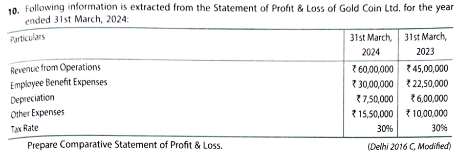Following information is extracted from the statement of Profit & Loss of Gold Coin Ltd. for the year ended 31st March, 2024: