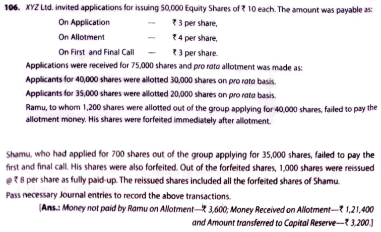 Ramu, to whom 1,200 shares were allotted out of the group applying for 40,000 shares, failed to pay the allotment money. His shares were forfeited immediately after allotment.