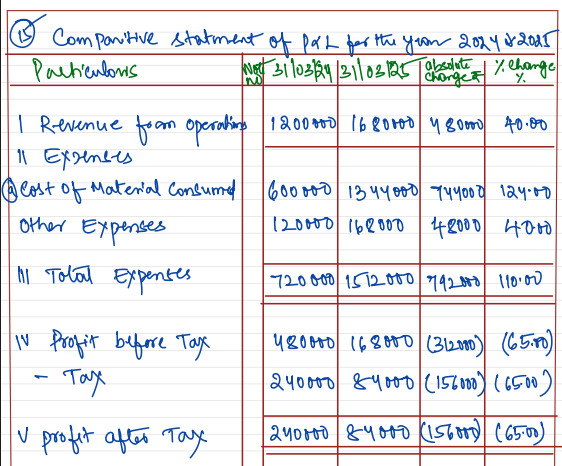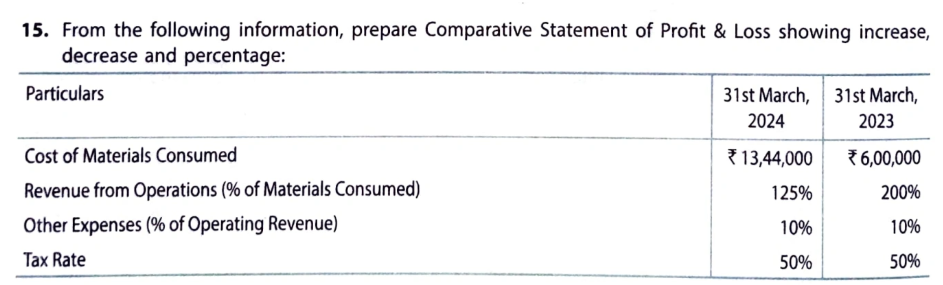 From the following information, prepare Comparative Statement of Profit & Loss. Showing increase decrease and percentage: