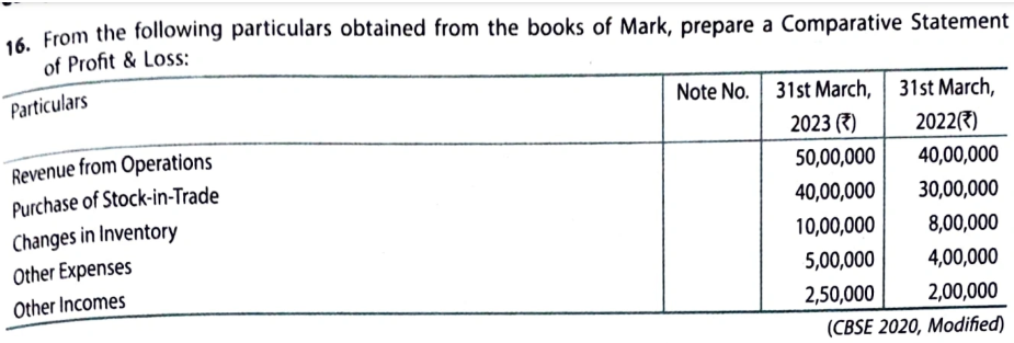 From the following particulars obtained from the books of Mark, prepare a Comparative Statement of Profit & Loss: