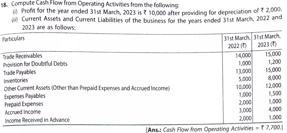 - Profit for the year ended 31st March, 2023 is ₹ 10,000 after providing for depreciation of ₹ 2,000.