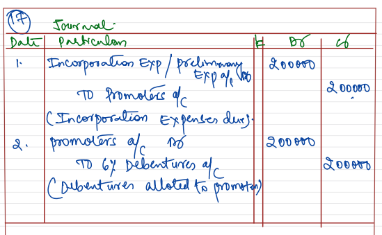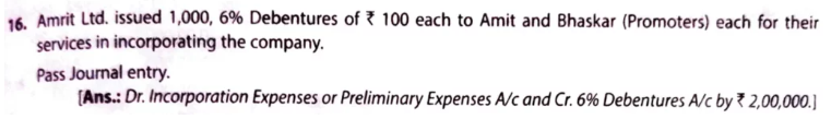 Amrit Ltd. issued 1,000, 6% Debentures of ₹ 100 each to Amit and Bhaskar (Promoters) each for their services in incorporating the company. Pass Journal entry.