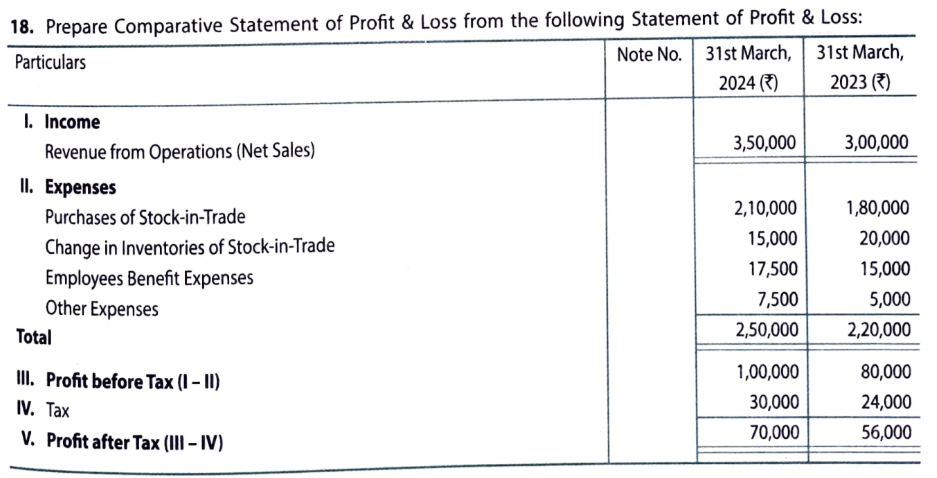 Prepare Comparative Statement of Profit & Loss from the following Statement of Profit & Loss: