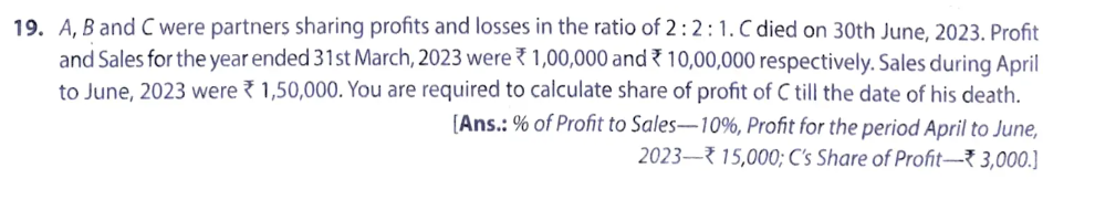 [Ans.: % of Profit to Sales – 10%, Profit for the period April to June, 2023 – ₹ 15,000; C’s Share of Profit – ₹ 3,000.]