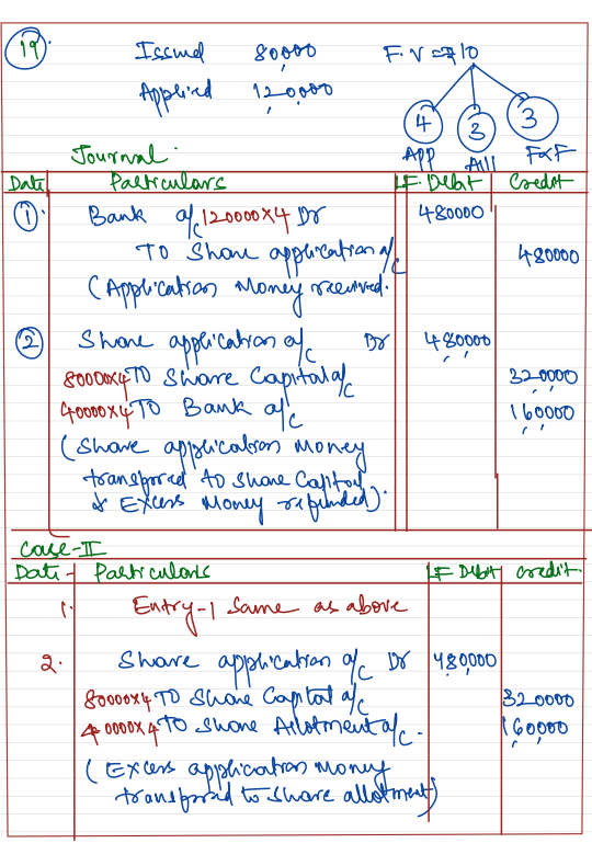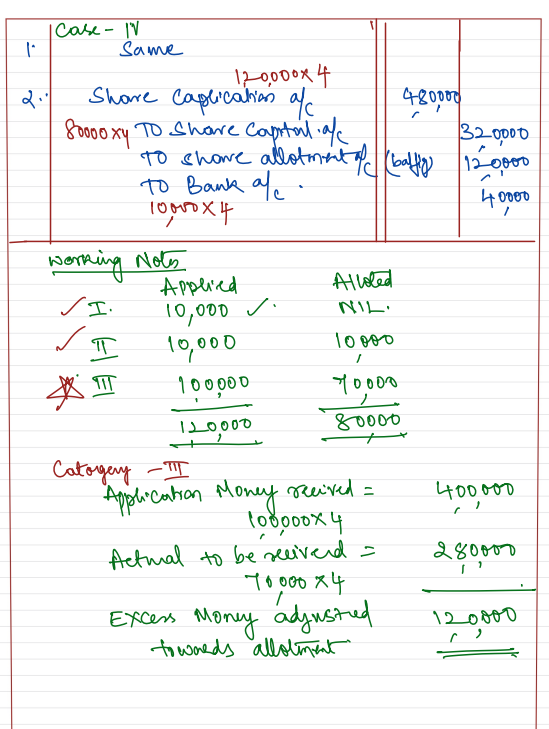 Case 4: Applications for 10,000 Shares were refused allotment, applications for 10,000 shares were allotted the shares applied and pro rata allotment was made to the remaining.