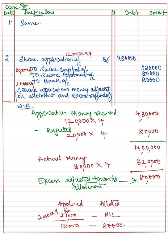 Case 3: Applicatoins for 20,000 Shares were refused allotment and pro rata allotment was made to remaining.