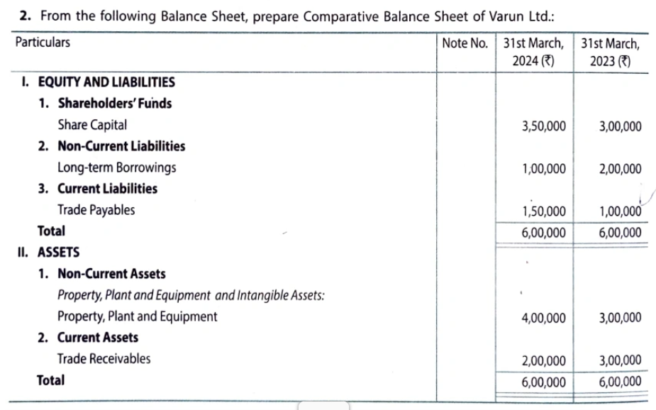 From the following Balance Sheet, prepare Comparative Balance sheet of Varun Ltd: