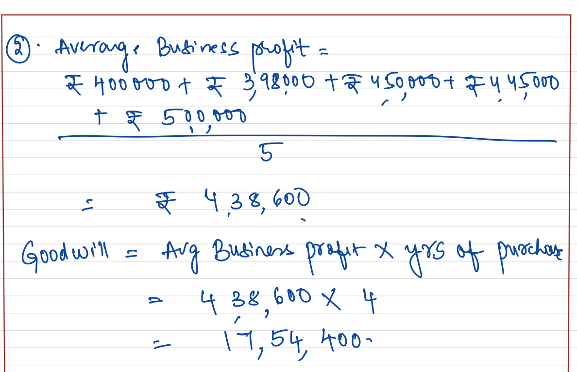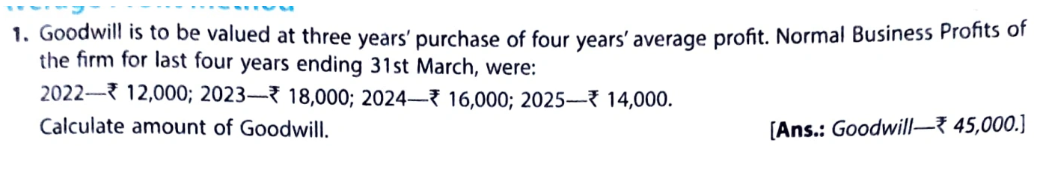 Goodwill is to be valued at three years’ purchase of four years’ average profit. Profits of the firm for the last four years ending 31st March were:
