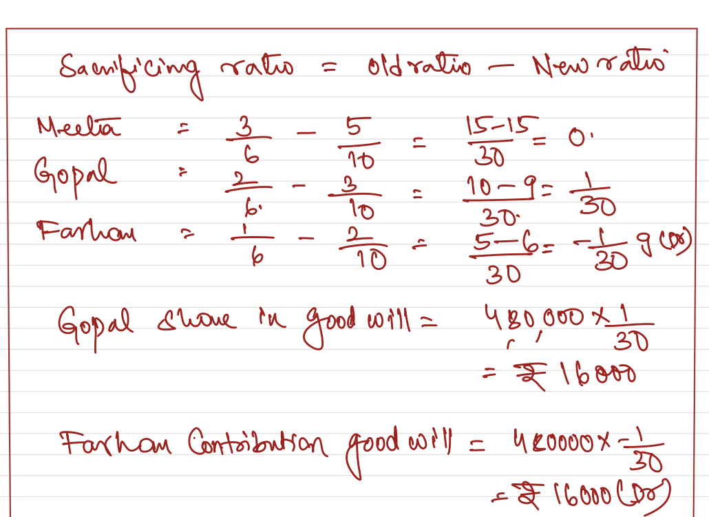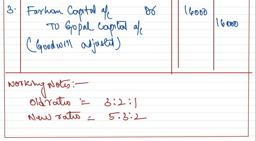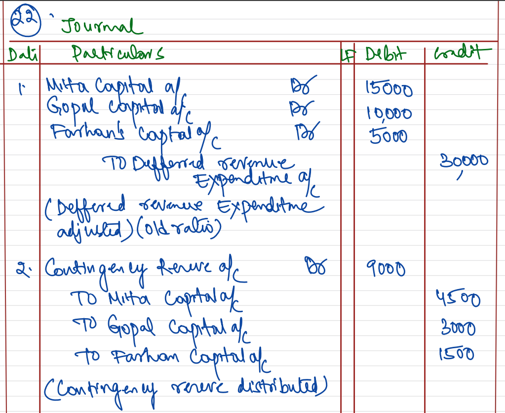 Mita, Gopal and Farhan were partners sharing profits and losses in the ratio 3 : 2 : 1. On 31st March, 2018 they decided to change the profit sharing ratio to 5 : 3 : 2. On this date, the Balance Sheet showed Deferred Advertisement Expenditure ₹ 30,000 and Contingency Reserve ₹ 9,000.