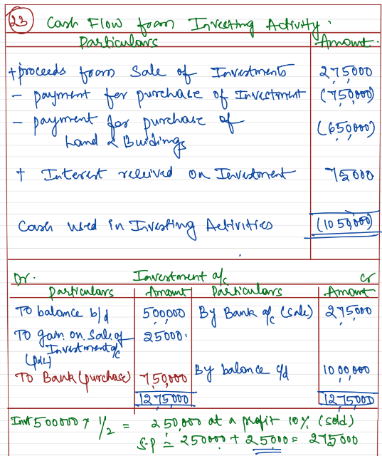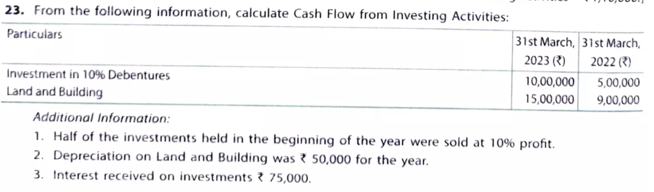 From the following information, calculate cash flow from Investing Activities: