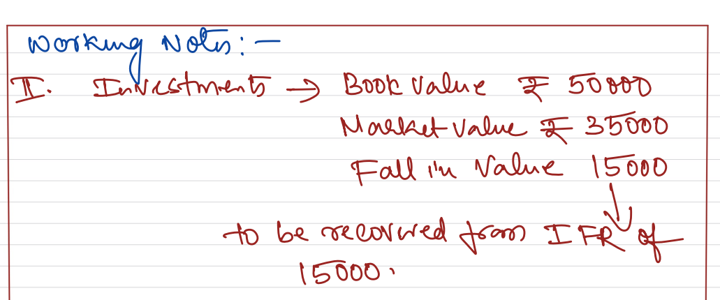 ii) That investment (having a book value of ₹ 50,000) was valued at ₹ 35,000.