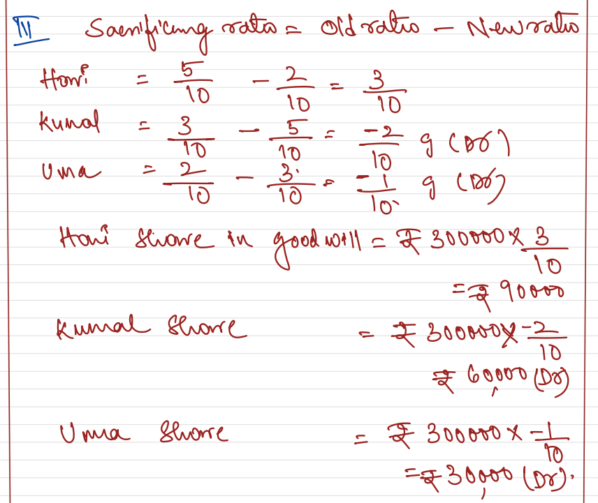 i) Goodwill of the firm was valued at ₹ 3,00,000.