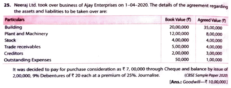 Neeraj Ltd. took over business of Ajay Enterprises on 1-04-2020. The details of the agreement regarding the assets and liabilities to be taken over are: