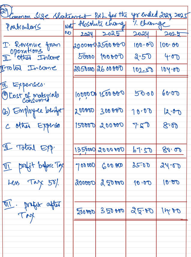 Prepare Common-Size Statement of Profit & Loss from the following Statement of Profit & Loss: