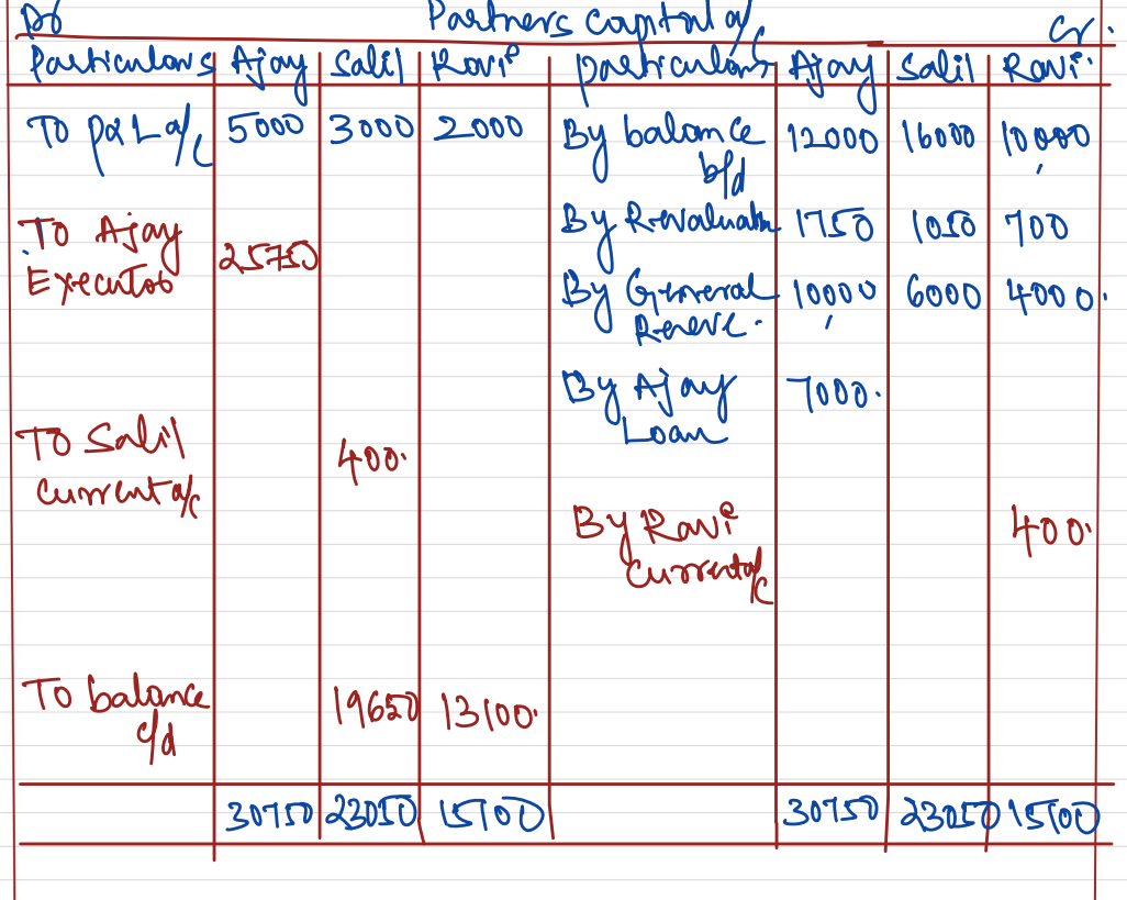 Ajay, Salil and Ravi were partners in a firm sharing profits in the ratio of 5 : 3 : 2. Ajay died on 20th February 2023. The Balance Sheet of the firm on that date was as follows: