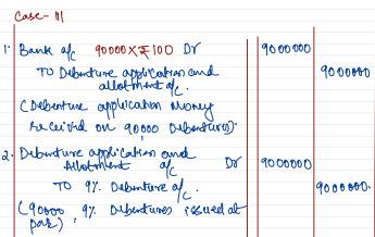 - Issued 90,000, 9% Debentures of ₹ 100 each at par, redeemable at par after 4 years.