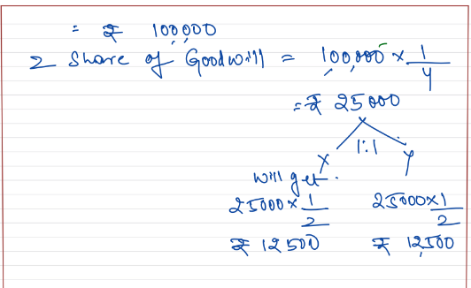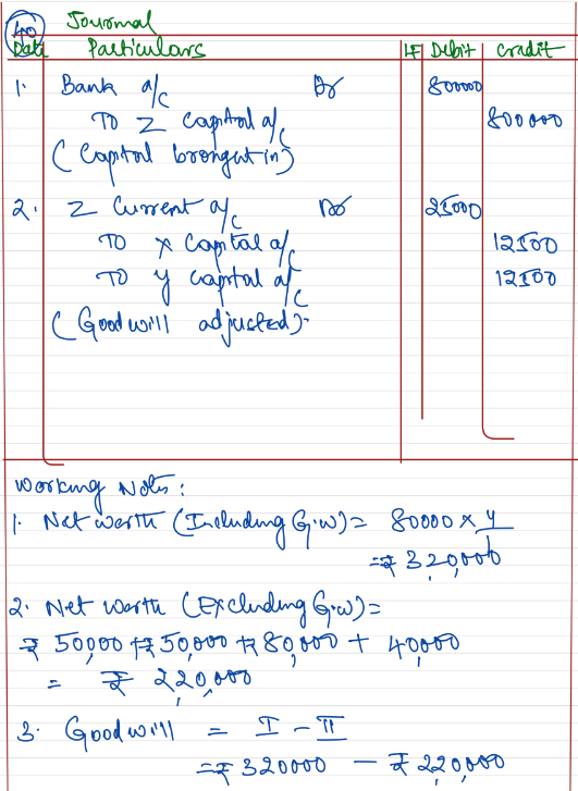 X and Y are partners with capitals of ₹ 50,000 each. They admit Z as a partner for 1/4th share in the profits of the firm. Z brings in ₹ 80,000 as his share of capital. Profit and Loss Account showed a credit balance of ₹ 40,000 as on date of admission of Z.