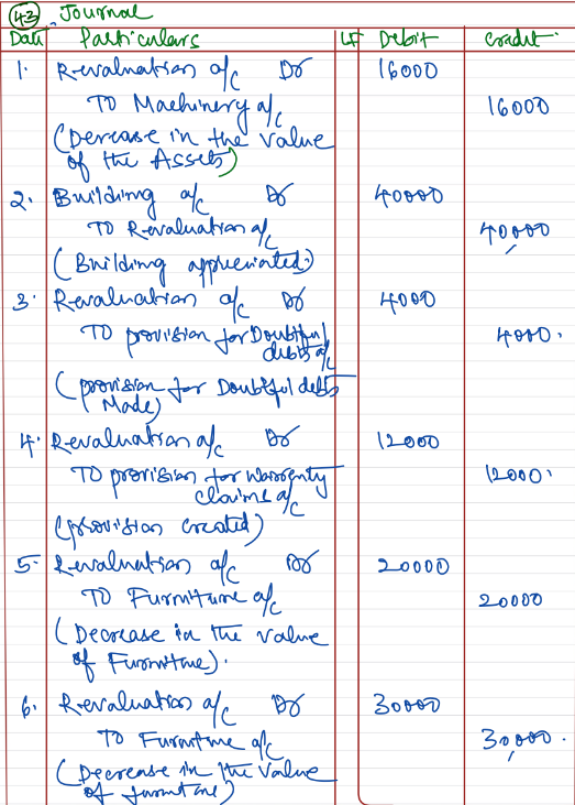 - Machinery be reduced by ₹ 16,000 and Building be appreciated by ₹ 40,000.