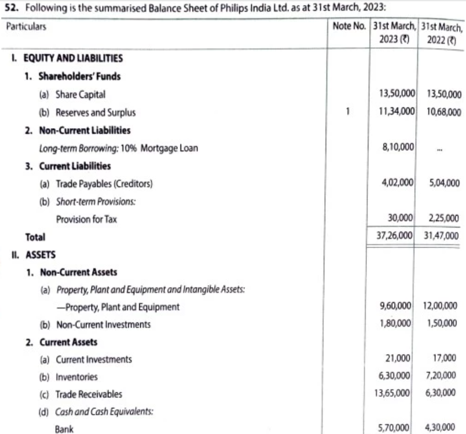 Following is the summarised Balance Sheet of Philips India Ltd. as at 31st March, 2023: