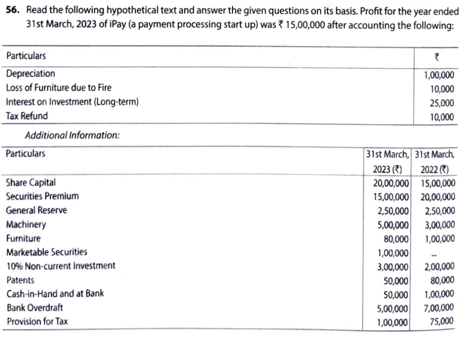 Read the following hypothetical text and answer the given questions on its basis. Profit for the year ended 31st March, 2023 of iPay (a payment processing start up) was ₹ 15,00,000 after accounting the following: