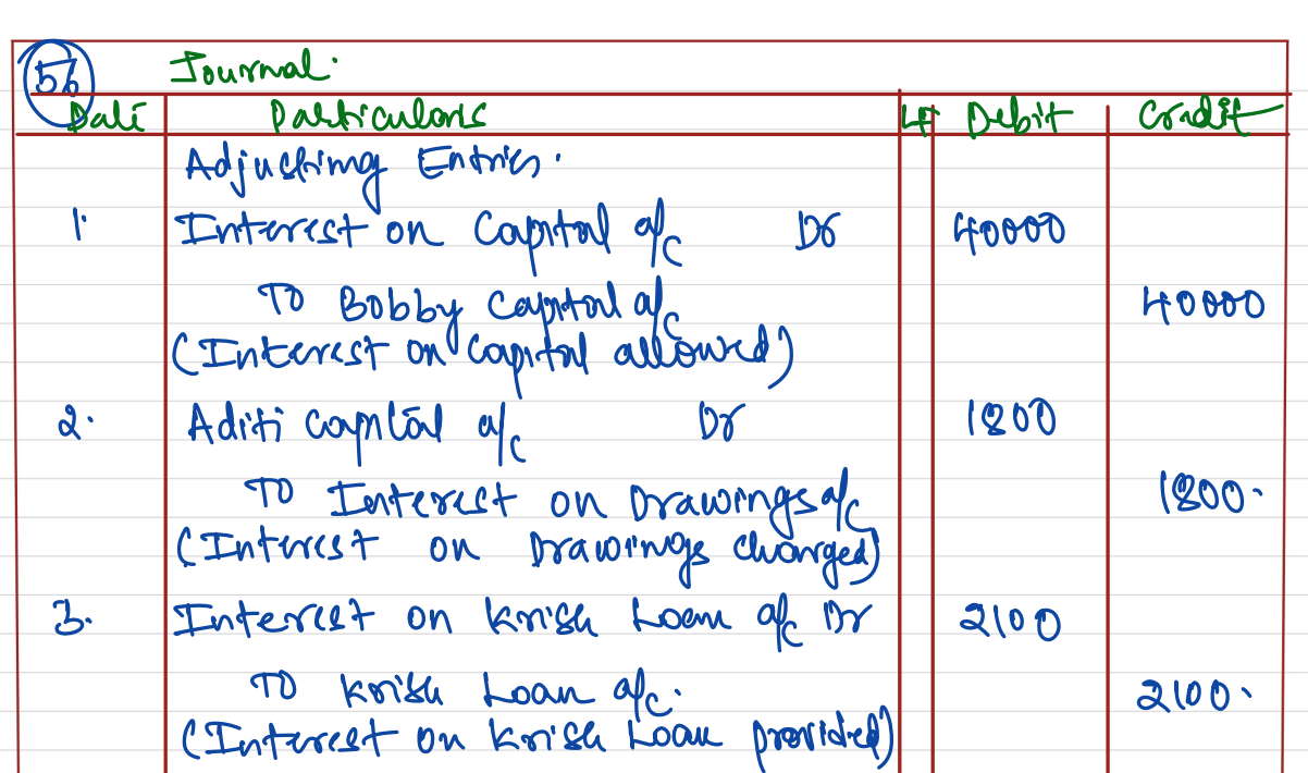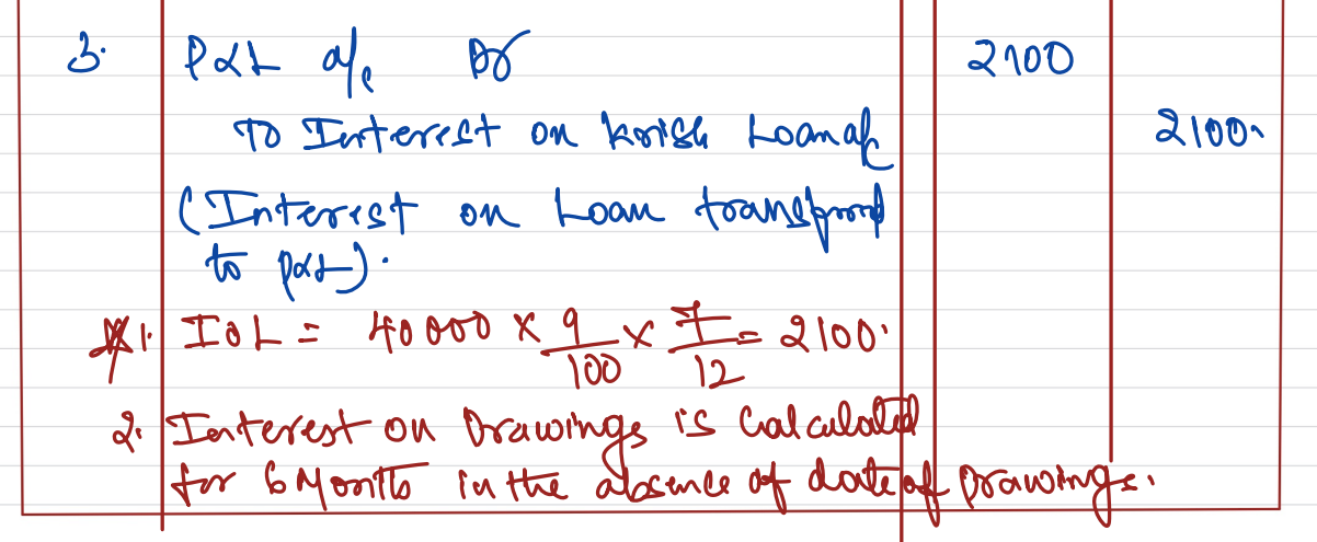 During the year, Aditi had withdrawn ₹ 60,000 and Bobby ₹ 50,000. On 1st September 2021, Krish had given a loan of ₹ 40,000 to the firm.