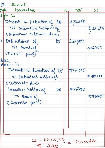 - Pass Journal entries for interest on debentures, If interest is payable on 30th September and 31st March each year.
