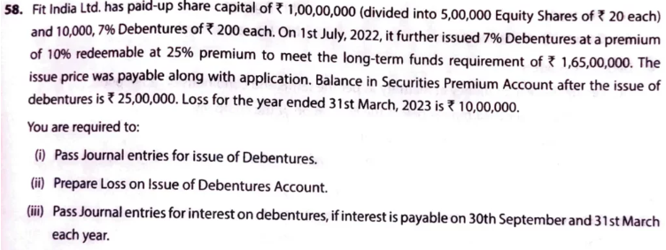 - Pass Journal entries for issue of Debentures.