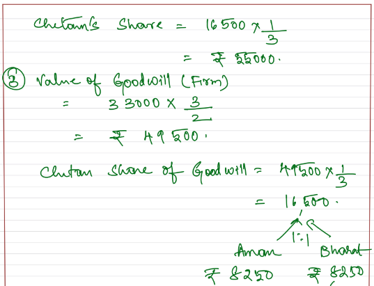 - His share of Goodwill of the firm calculated on the basis of 1 and half times the average profit of the three preceding completed years.