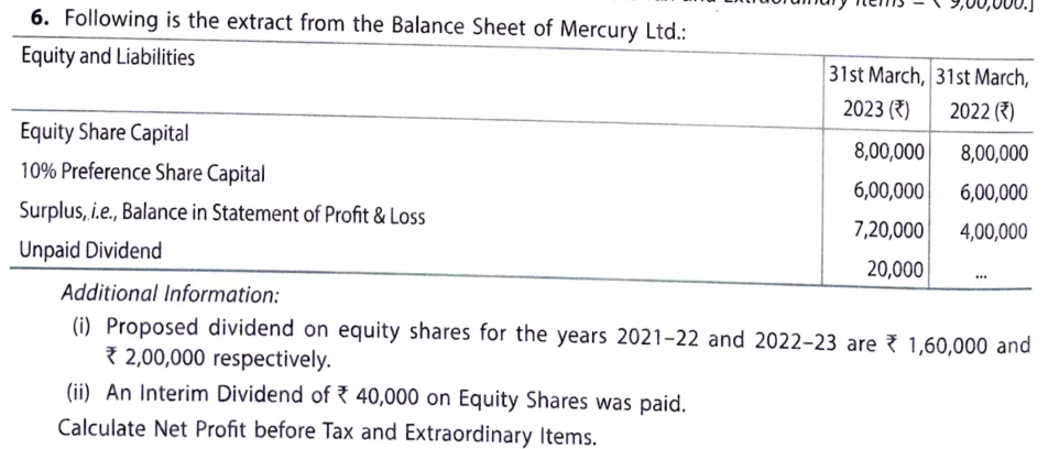 Following is the extract from the Balance Sheet of Mercury Ltd: