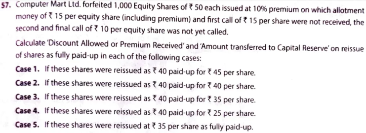 - If these shares were reissued as ₹ 40 paid-up for ₹ 45 per share.