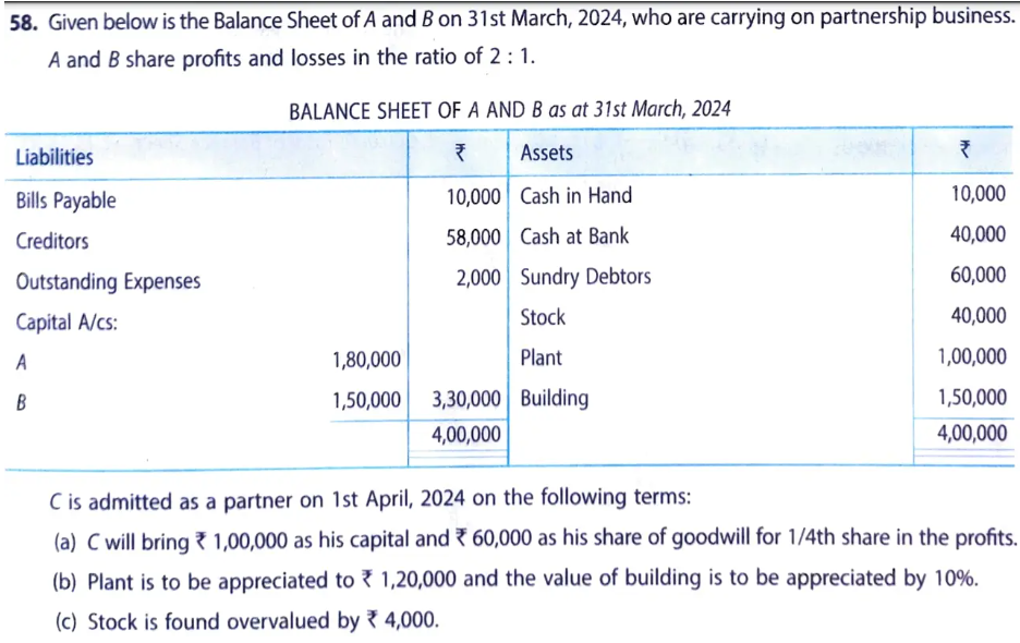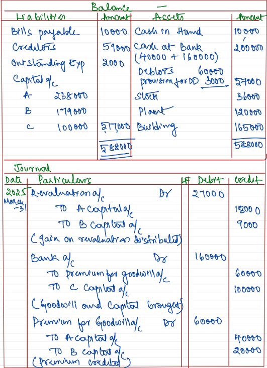 C is admitted as a partner on 1st April, 2023 on the following terms: