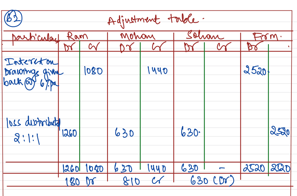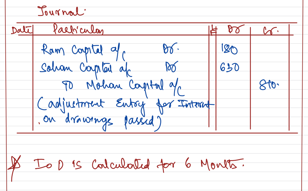 [Ans: Dr. Ram’s Capital A/c by ₹ 180 and Sohan’s Capital A/c by ₹ 630; Cr. Mohan’s Capital A/c by ₹ 810]