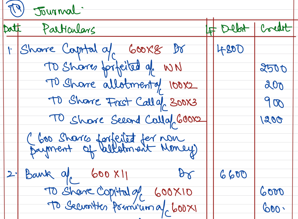 They all fail to pay their arrears and the second call of ₹ 4 per share. Shares are forfeited and subsequently reissued @ ₹ 11 per share as fully paid-up.