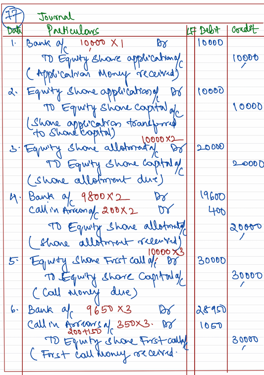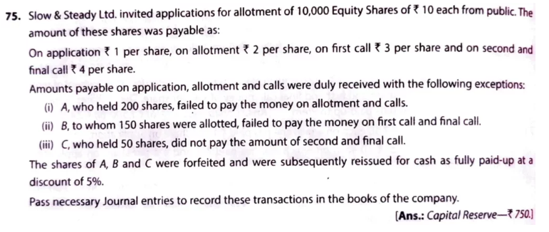 Slow & Steady Ltd. invited applications for 10,000 Equity Shares of ₹ 10 each for public subscriptions. The amount of these shares was payable as: