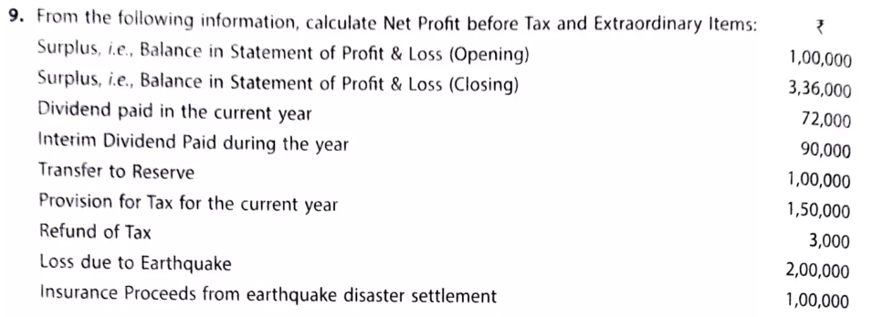 From the following information, calculate Net Profit before Tax and Extraordinary Items: