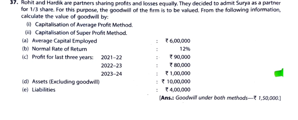 Rohit and Hardik are partners sharing profits and losses equally. They decided to admit Surya as a partner for 1/3 share. For this purpose, the goodwill of the firm is to be valued. From the following information, calculate the value of goodwill by: